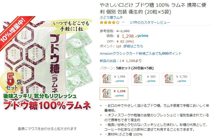 使ったのは、3gづつ個装になっているブドウ糖(ラムネ風)