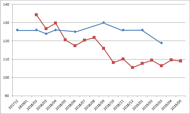 前回に引き続き起床時血糖値の推移です。