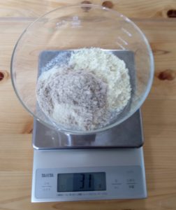 今回は10gづつ使いました。「キッコーマン」も使ったのは、おからパウダーがない騒ぎの最後のころにアマゾンで箱買いしたため、賞味期限中に消費するためです。