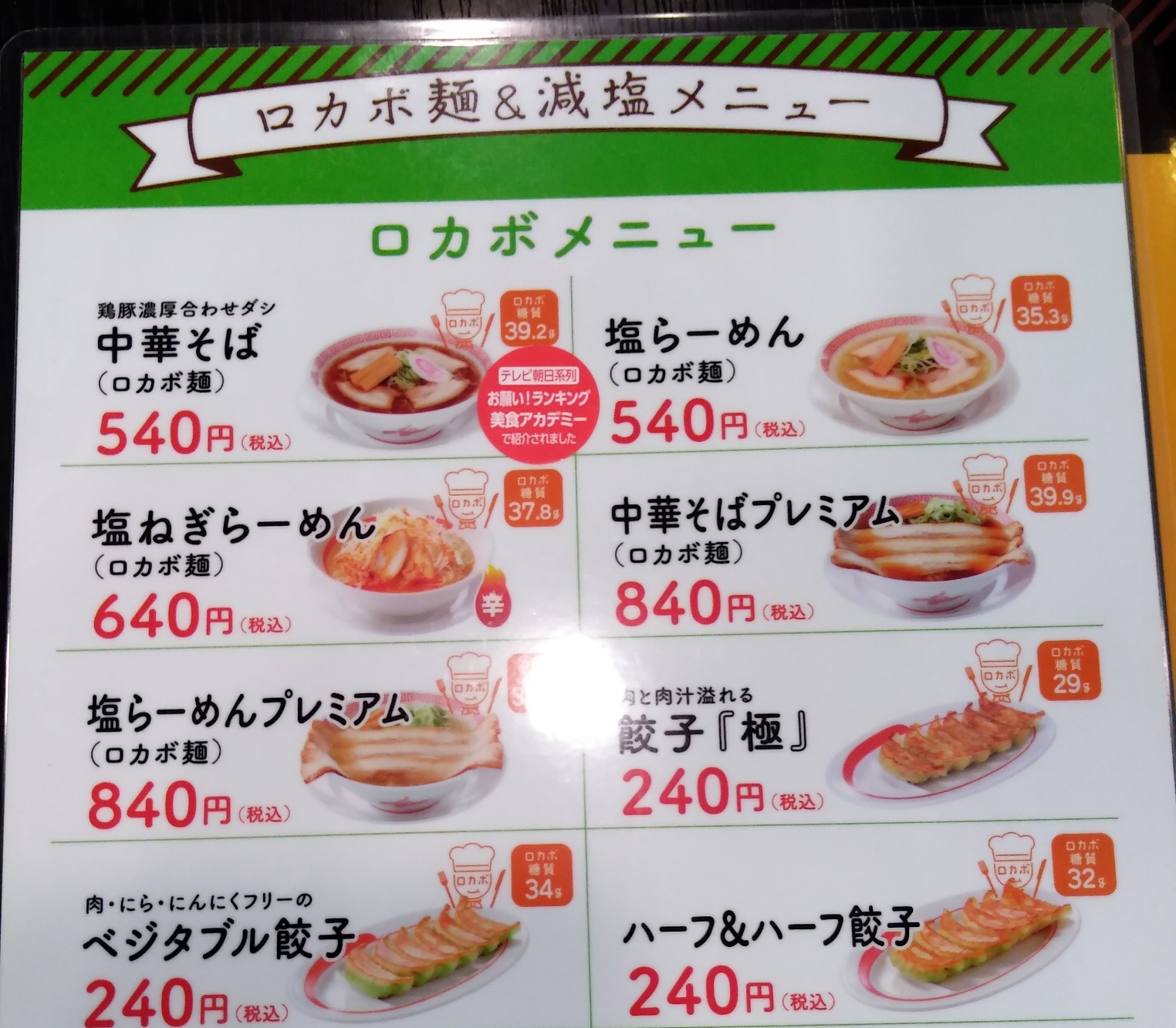 幸楽苑でロカボ麺が選択できるようになったので、さっそく実食してきました。