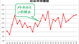 日々メトホルミンの血糖値上昇抑制効果 メトホルミンの休止前と休止後の起床時血糖値の変化について前の記事に書きました。 メトホルミンの休止前と休止後の起床時血糖値 前後各2週間程度の状況ではありますが、休止前107、休止後114ですから、 メトホルミンの起床時血糖値への効果... 2020.03.29日々