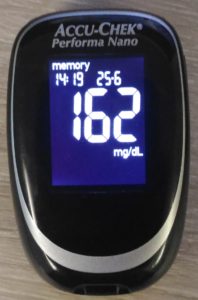いつもは15gの糖質で1時間値160~170、2時間値140前後です。2時間値を140未満というのが食後高血糖を防ぐよい目安のようです。