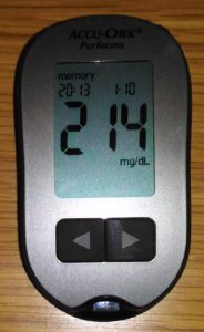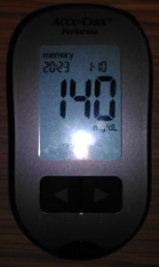 その後少し息を整えて、運動終了後3分位、食後血糖値を測定してから10分後の血糖値は、