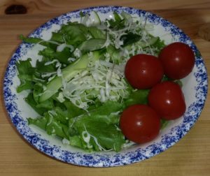 サラダには、オリーブオイルと酢を混ぜたドレッシングをかけています。たまに醤油を追加したりもします。