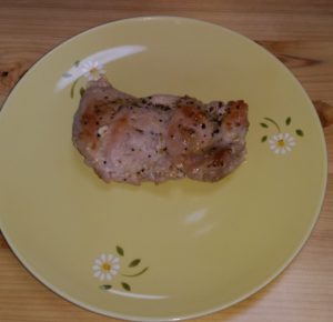 鶏肉約150gのソティー。コストコで買ってきて、小分けにしてラップして冷凍してあります。鳥のほかに、鮭、サバ、も常備です。