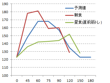 2時間値は180をほとんど超えないので糖質30~40gを取るという失敗をしていました。