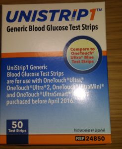 写真はテストストリップの箱ですが、ジェネリックテストストリップと記載されています。アメリカではテストストリップにもジェネリック品があるのですね。日本とは異なり血糖測定を多くの人が行っている日常的な行為なのだろうと感じます。血糖測定のテストストリップが高度管理医療機器に指定され、薬局でしか購入できない日本とはずいぶん違いますね。